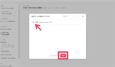 ②ブランドを選択し[決定]をクリック